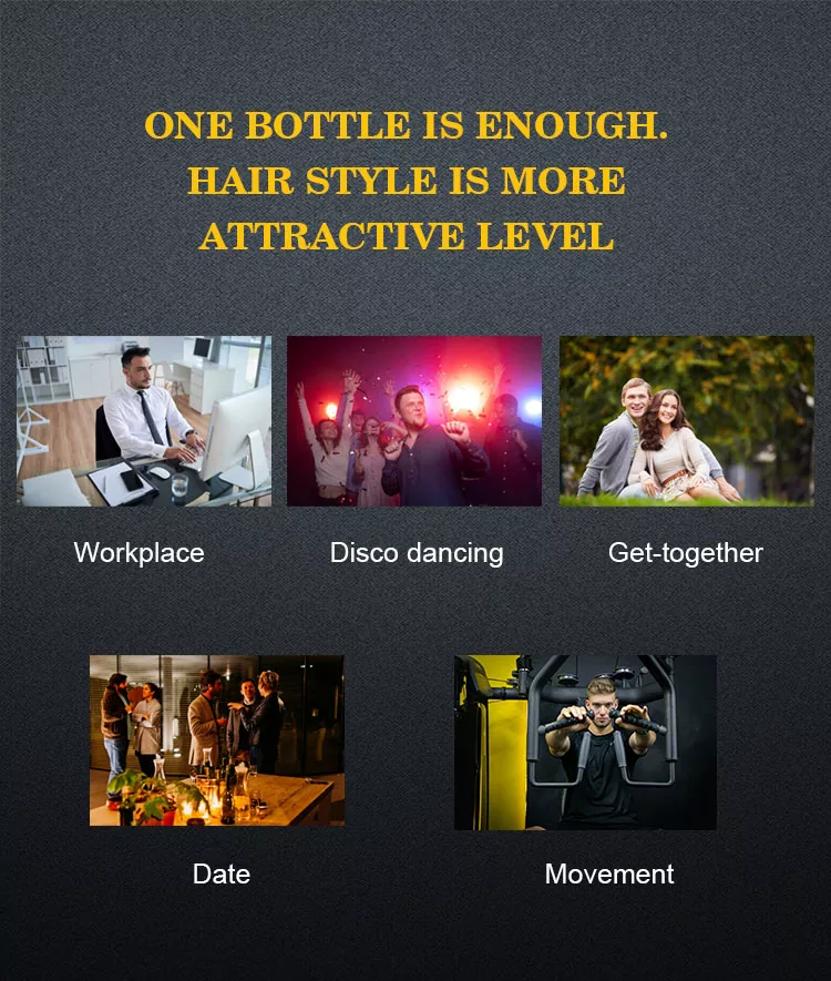 Ang mga ultra ng mga lalaki ng Wilson Men's Seamless hair styling gel cosmetics ay tumutukoy sa estilo ng buhok at pagbabago ng epekto ng mga pampaganda, spray o inilalapat sa buhok, ang solvent na pagsingaw at pagpapatayo sa buhok upang makabuo ng isang transparent na pelikula, upang ang hair fiber upang patigasin at mapanatili ang hugis ng layunin upang matugunan ang mga pangangailangan ng iba't ibang mga hairstyles.