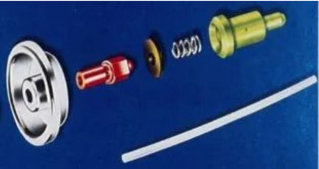 Ang cosmetic aerosol valve ay binubuo ng pitong bahagi, tulad ng sealing cup, balbula stem, valve chamber, spring at suction pipe.